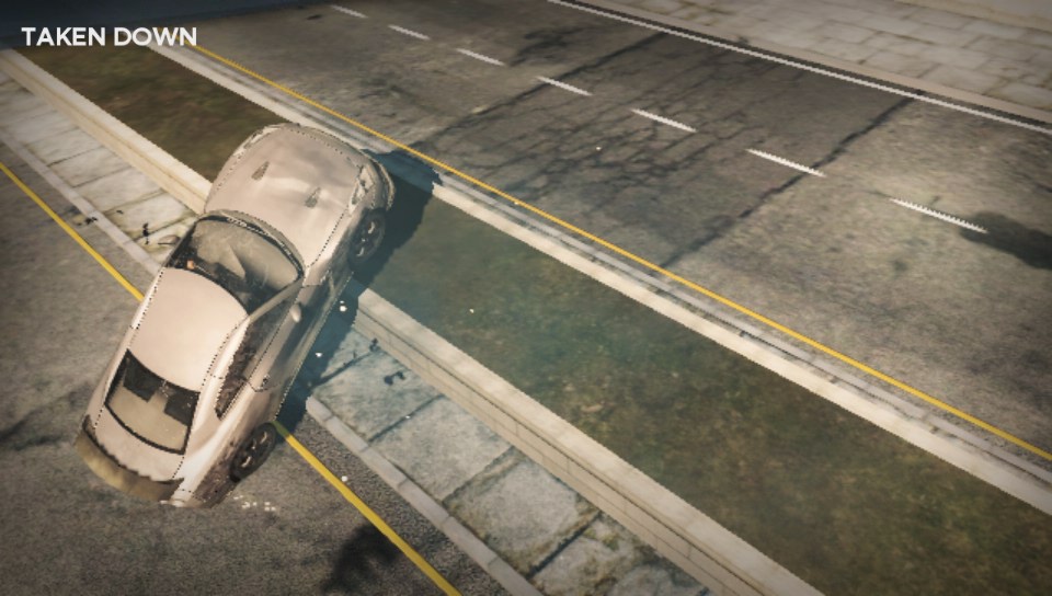 而你四輪子破掉 還要逃掉警察的追擊幾乎不可能(除非你能撐到有加油站的地方