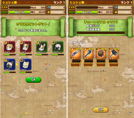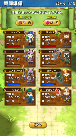 闖關成功後,每隻夥伴們都會獲得經驗值及掉落的武器。