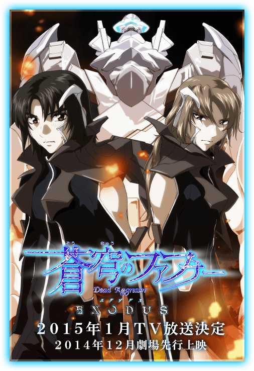 你,在那裡嗎?動畫《蒼穹之戰神 EXODUS》公式網站重置、宣傳影像第二彈公開| 監督 總監督 原作 製作人 系列構成・腳本 角色設計 機械設計 3DCG導演 美術監督 美術設定 色彩設定 撮影監督 音響監督 音樂 動畫制作 |