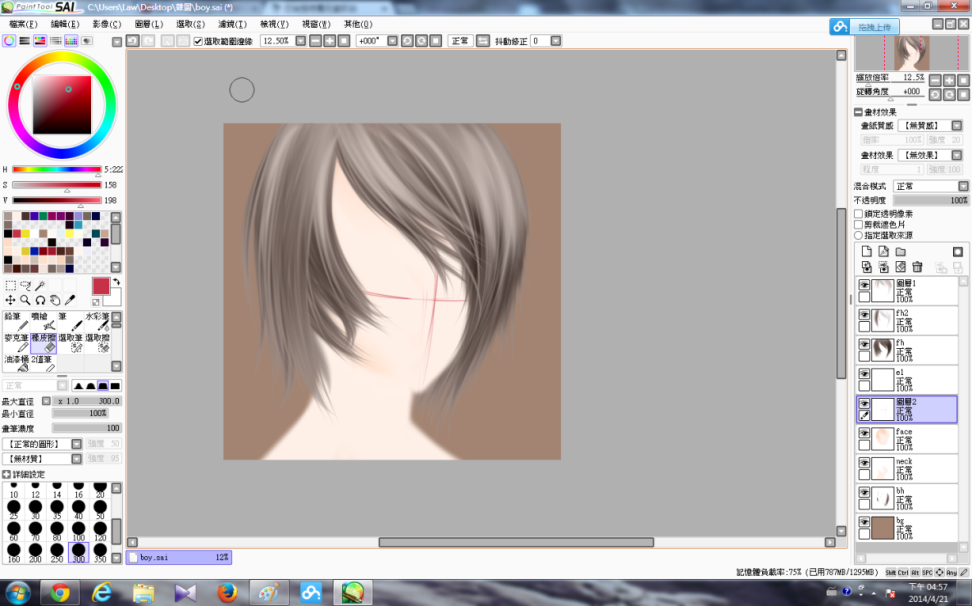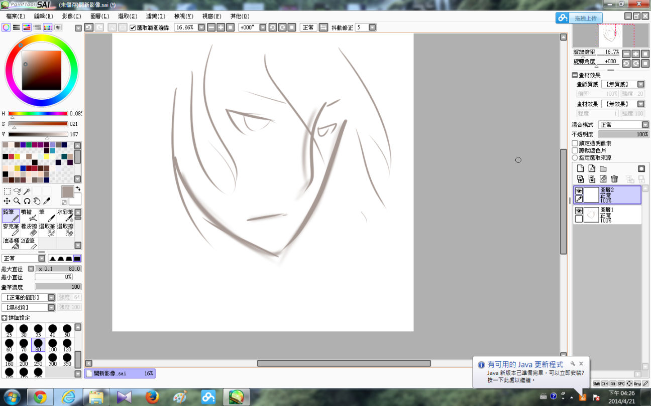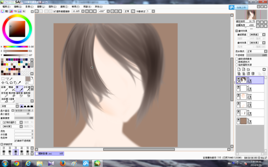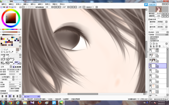 然後是頭髮的細緻化(基本上是用幼身的筆不斷畫線……)接着是在鼻的位置上點色,再加上眼