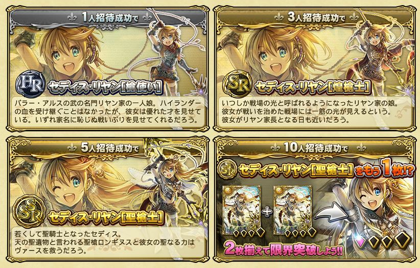 3) 招待朋友參與事前登錄,可獲得卡片「セディス‧リヤン」。