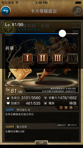 可顯示隊伍加成,可自訂卡片等級與昇華等級歐!