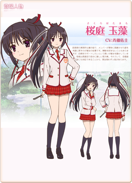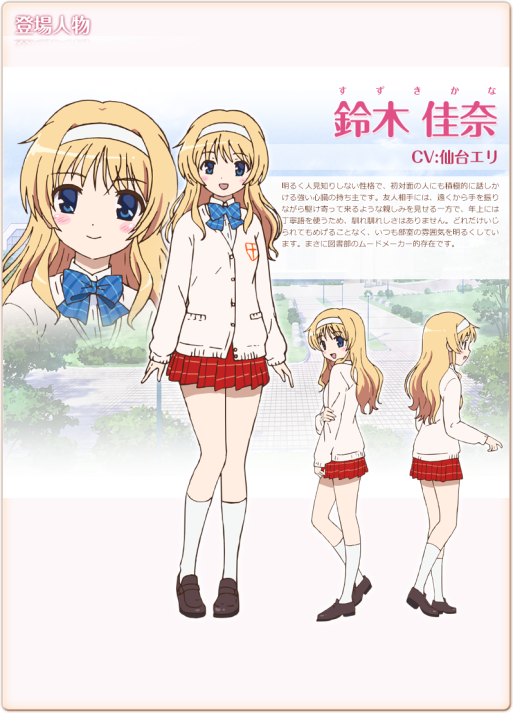 從入學以來就一直是圖書社社員,在社辦中幾乎都是在讀書,但在鶫她們加入圖書社後變得積極協助活動;卻也有些苦惱讀書時間因此變少。