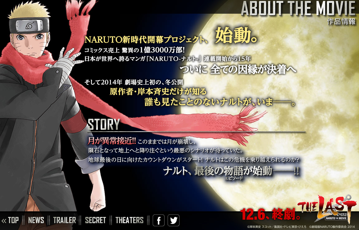 《THE LAST -火影忍者劇場版-》最新視覺圖及故事大綱公開 舞台劇化決定同標籤作品搜尋:THE LAST -火影忍者劇場版-