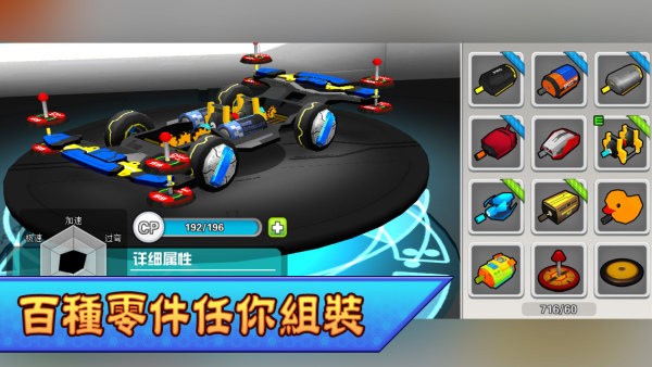 對一個四驅車車手來說,「零件改裝」相當重要,官方對此表示,遊戲中擁有數百款以上零件,「龍頭」、「鳳尾」、「馬達」、「齒輪」等等,全部可由玩家自由改裝。此外,四驅車外殼也可隨時更換,玩家將可隨自己喜好、打造一臺專屬自己的四驅車。