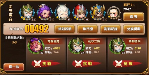 另外這一個遊戲最令人欣賞的設定就是讓所有人都可以藉由競技場取得超級實用的英雄,許多鬼神級的英雄都只能一點一滴的在競技場中累積功勛魂石才能獲得,不再只有課金玩家才能獨享超級英雄。對於無課的玩家來說,只要持續玩下去,遲早有一天也可以組出完美隊伍。