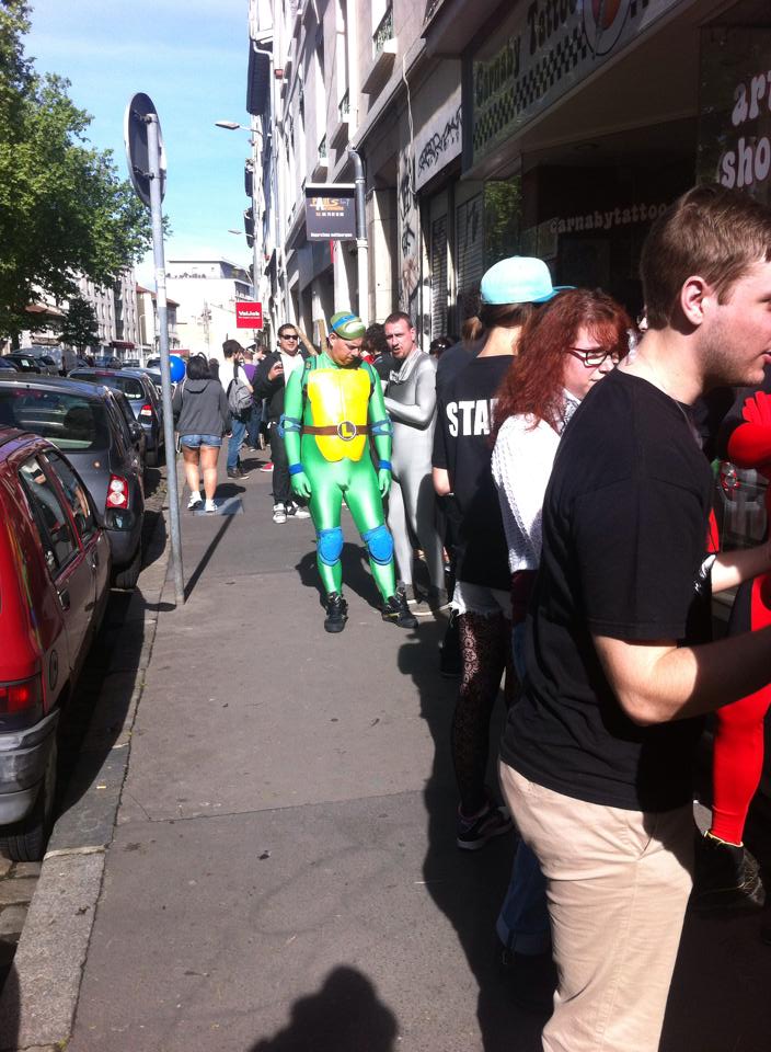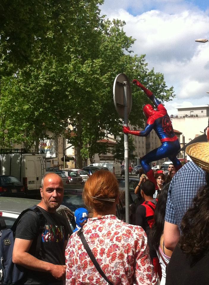 隊伍中穿插著超級英雄的cos跟一般民眾,大家可以比眼力來找找英雄在哪裡~