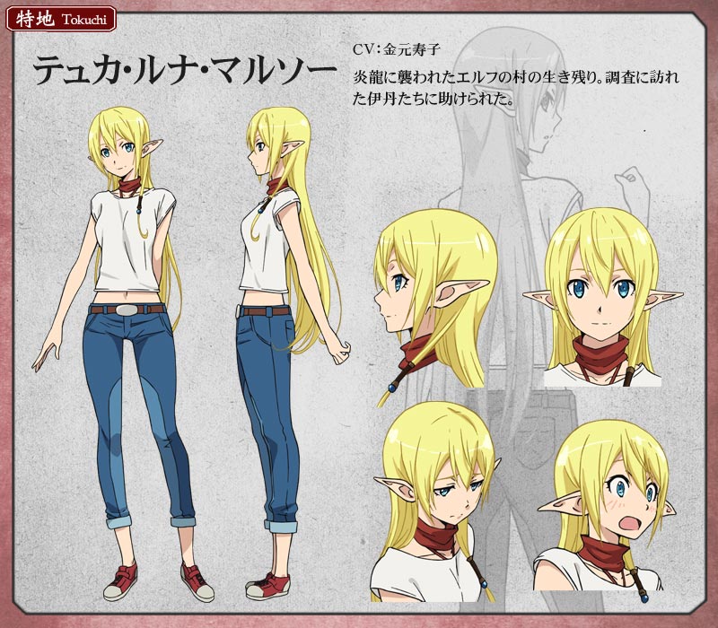 高等精靈一族的女孩,金髮碧眼風格出眾,特長為弓箭和豎琴。與父親一起在哥塔村附近森林中的精靈村落生活,村落被炎龍毀滅後,被前來偵察的伊丹一行人拯救。