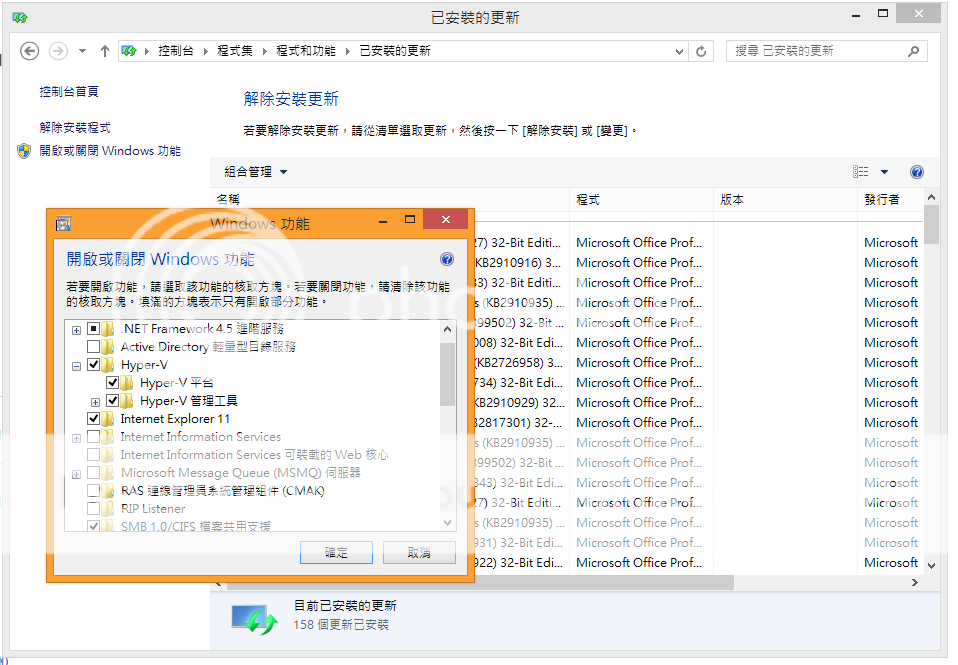 當您的作業系統是以上版本時,便可以到下面這個地方開啟Hyper-V的功能。