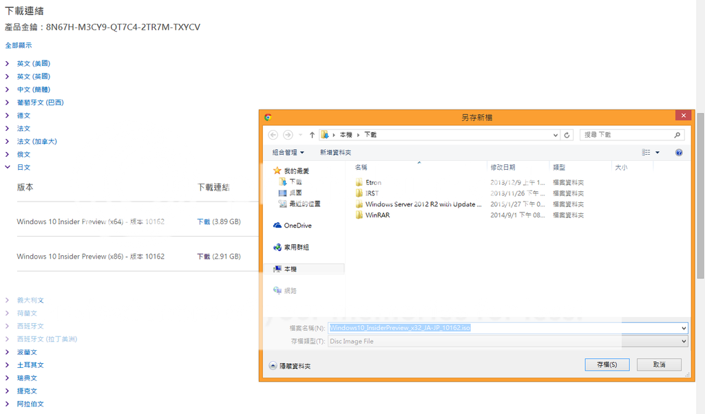 雖然很想這麼說,不過在架虛擬機之前,必須先去下載Windows 10 InsiderPreview的ISO檔才行。