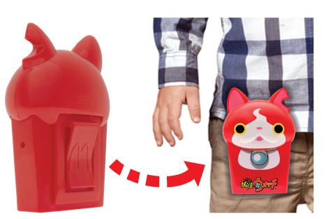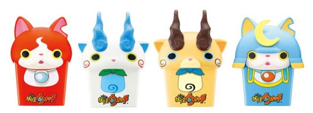 「妖怪手錶薯條盒」的外型是可愛風格的立體造型,共有《妖怪手錶》的吉祥物「吉胖喵(ジバニャン)」、牠的祖先「武士喵(ブシニャン)」、雙胞胎兄弟「小石獅(コマさん)」、「小石次郎(コマじろう)」4 種人氣妖怪。妖怪的頭部是分開的,設計成打開後身體的部分可以放入小包薯條的紙袋。(※沒有附小包薯條)