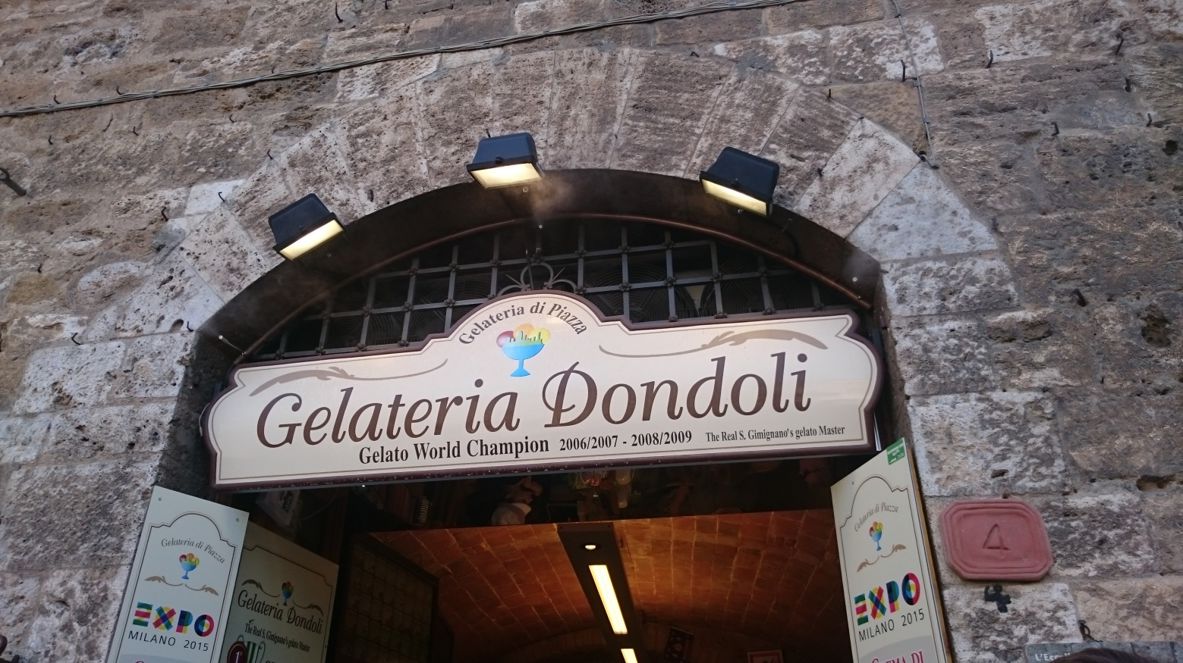 這座城主幹道是一條南北向的道路,主幹道的中央是最高點。所以我們從南端的入口進城後,就移路往上爬,城中央有一個水井廣場,廣場旁有一些世界第一的冰淇淋店,領隊在這請大家吃冰淇淋。
