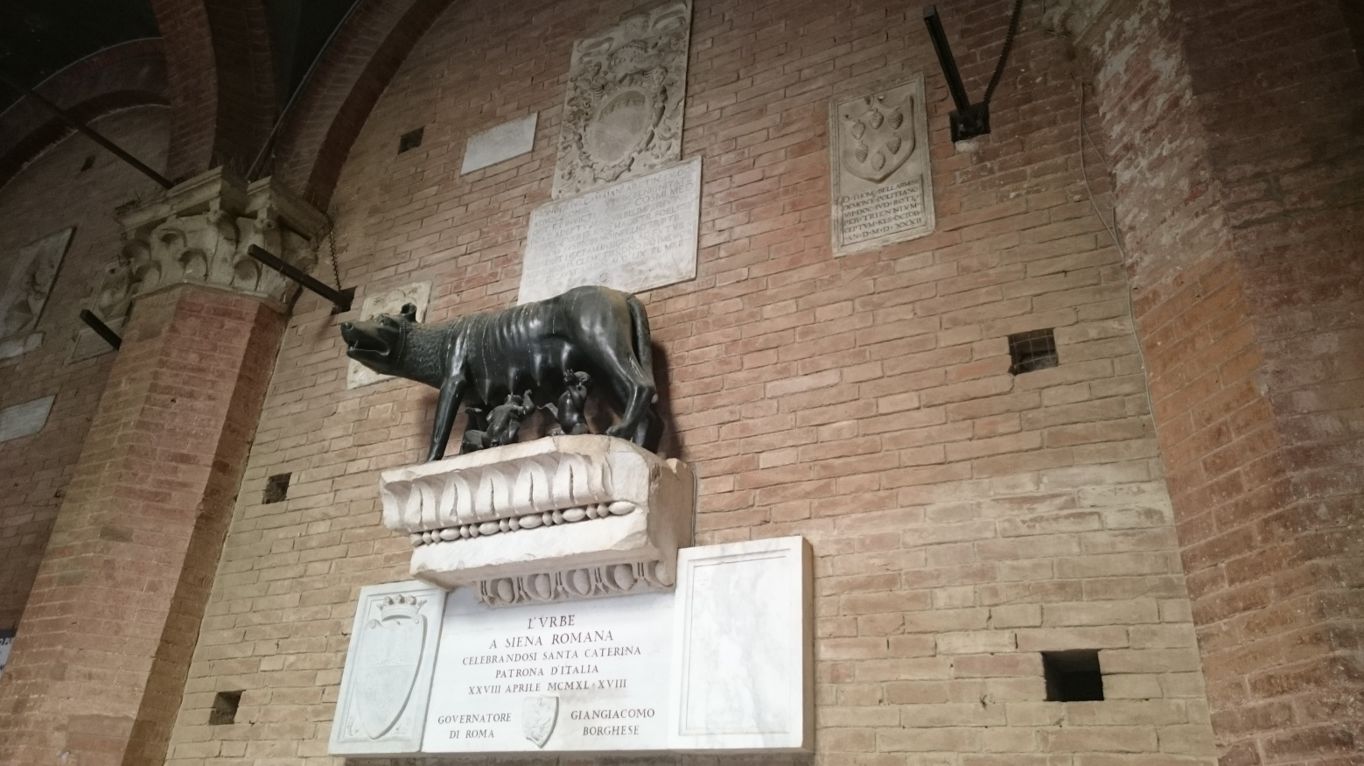 而西恩納城跟這對雙胞胎也有極密切的關係:雙胞胎兄弟奠定了羅馬城的基礎,但兄弟倆卻為了羅馬建城的位置產生爭吵,最後哥哥羅穆斯殺了瑞摩斯,瑞摩斯的兒子逃亡到西恩納這地方,建立這座西恩納城。