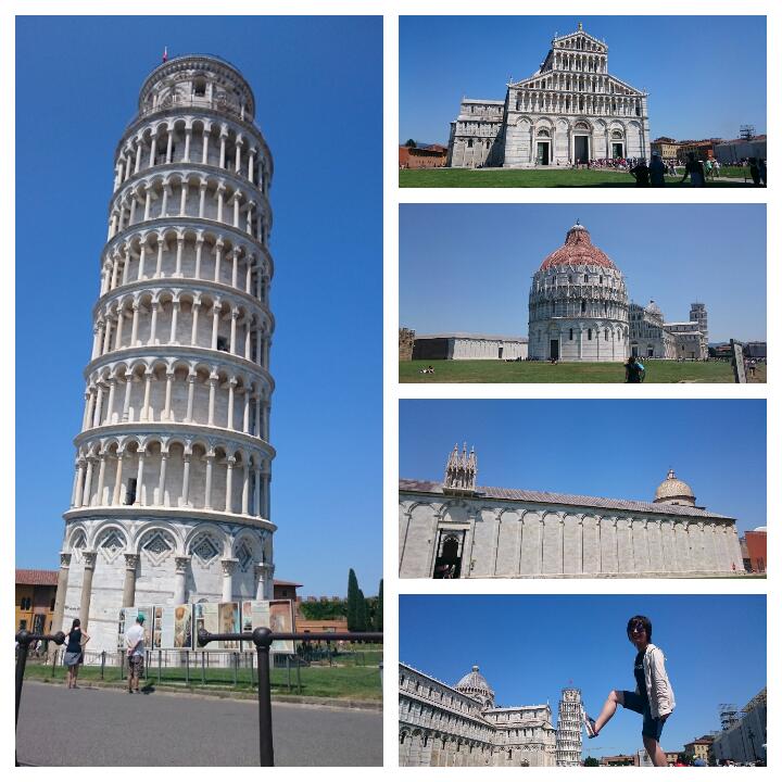 比薩主教座堂廣場,也叫做奇蹟廣場,這之中有四大建築物:比薩主教座堂、聖若望洗禮堂、洗禮堂墓園,還有其中最著名的比薩斜塔。比薩斜塔現在雖然開放登塔,不過基於保護古蹟的原則,我們沒有爬這座塔。