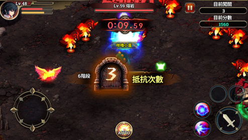 精靈塔的玩法是從一樓開始爬,每層樓通過之後,都會詢問是否要退出。如果選擇退出,就可以獲得目前累積的獎勵。但是如果繼續挑戰卻不幸陣亡的話,就什麼獎勵都沒有了。精靈塔內每隔10層樓會有個紀錄點,當玩家通過之後,下次就會從記錄點之後開始挑戰,算是蠻方便的設計。精靈塔主要的獎勵是角色覺醒需要的靈魂石,還有強化精靈用的精靈之塵,都是很重要的道具。