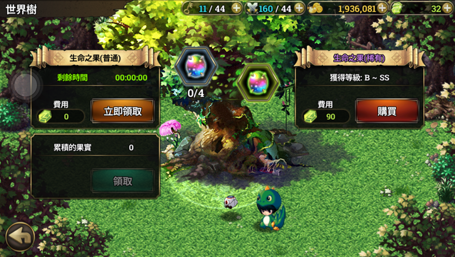 另外還有多一個世界樹,世界樹會產出神秘果實,是給戰鬥寵物升級用的,不要忘記定時去領哦。
