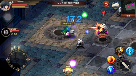 在戰鬥準備畫面的下方,有個自動藥水的開關,不過要VIP5以上才能使用的訊息,但是在澤諾尼亞S中的VIP等級不是得靠儲值一定才能獲得,只要在遊戲中完成成就系統內的任務,就可以獲得VIP等級,而且VIP等級提升後,還有不少禮物可以領取,光靠解任務,就可以提昇不少VIP等級。進入戰鬥後可以按AUTO打怪,也可以選擇自行操控虛擬搖桿和右方的按鈕打怪,越是練到後面怪越強大,越是需要手動輔助。
