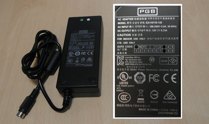 電源供應器的供應商是翌勝電子,型號為EA11011D-120,輸出是12V—8.33A。