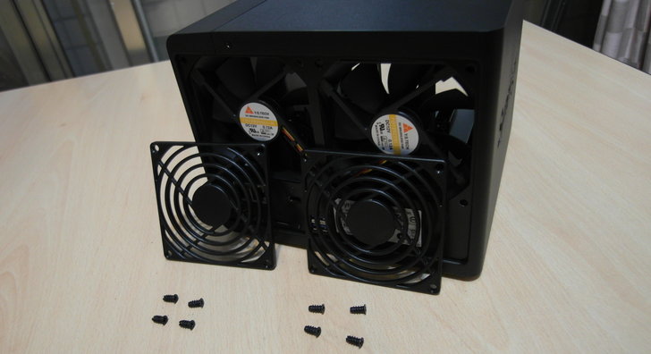 整台NAS的內部主要只有容納硬碟的空間,並且直對兩個風扇排風,使硬碟擁有較好的散熱效果!