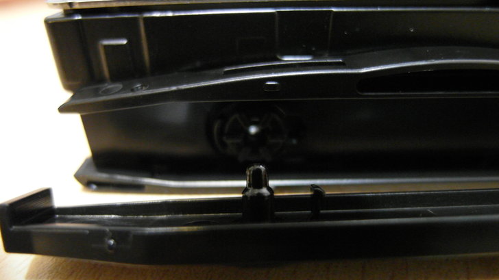 要取出硬碟抽取盒非常簡單,先壓著上方有寫著"PUSH"的地方,接著就可以將抽取盒拉出來了。