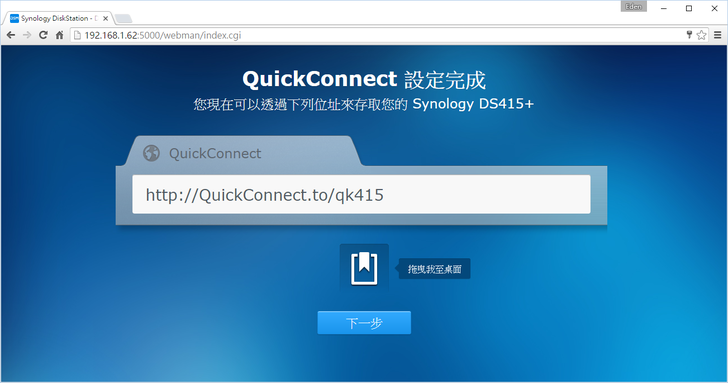 下面QuickConnect的設定十分重要,因為它可以幫助你直接透過外網來存取NAS,而不用做其他的設定;連線方式為NAS-->Synology-->User(外網)。不過個人建議還是用DDNS直連會比較快,因此後面會介紹如何使用DDNS來做連線(須設定路由器的port)。