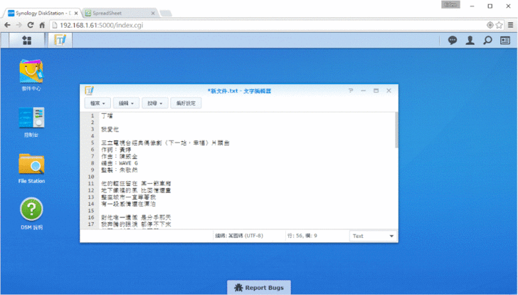 【文字編輯器】DSM有內建文字編輯器,不過這可不是Windows系統內建的"記事本"喔,而是類似notepad++軟體,提供了一些額外的功能。例如:常常我們會下載到簡體字的文章,看了真的很不舒服,這時候文字編輯器提供簡轉繁or繁轉簡的功能。