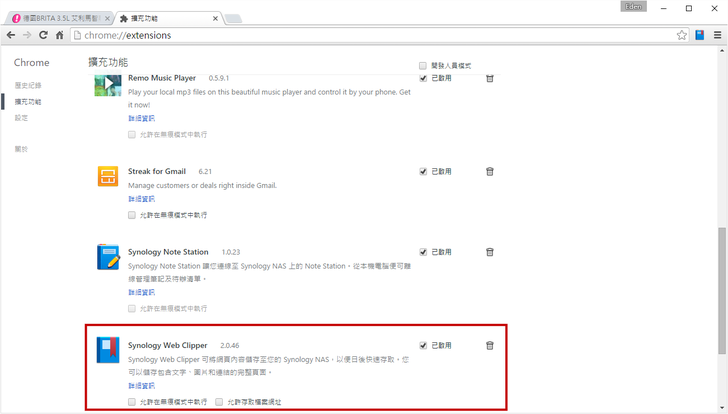 最後是Note Station最強大的功能:Synology Web Clipper,它是Chrome瀏覽器的擴充功能,主要功能就是可以擷取畫面上的資訊,然後直接傳送到Note筆記。