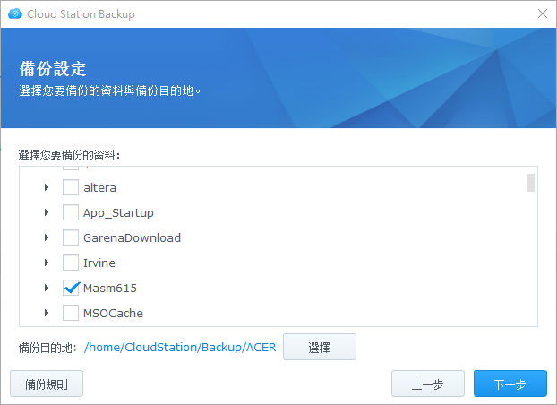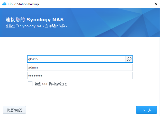 【Cloud Station Backup】將Cloud Station Backup的軟體下載下來並安裝,開啟程式後會出現下圖畫面。