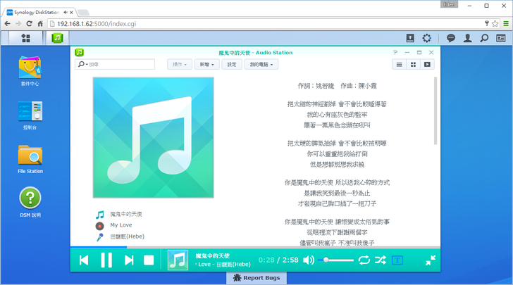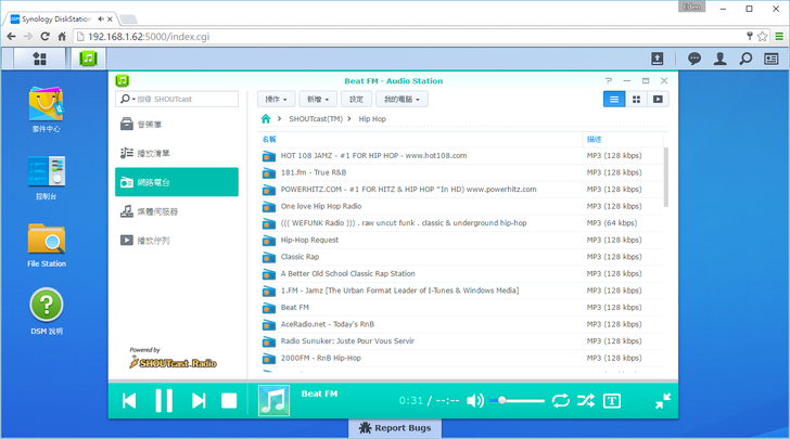 如果自己的音樂聽膩了,Audio Station裡面還有數百個網路電台供你選擇,聽都聽不完呀!筆者最喜歡的電台是JPOP的[Odyssey Radio]Jpop & Anime,它裡面有流行以及懷舊的卡通音樂和日文歌(而且它會顯示正在播放的歌曲名稱唷),推薦給大家XD