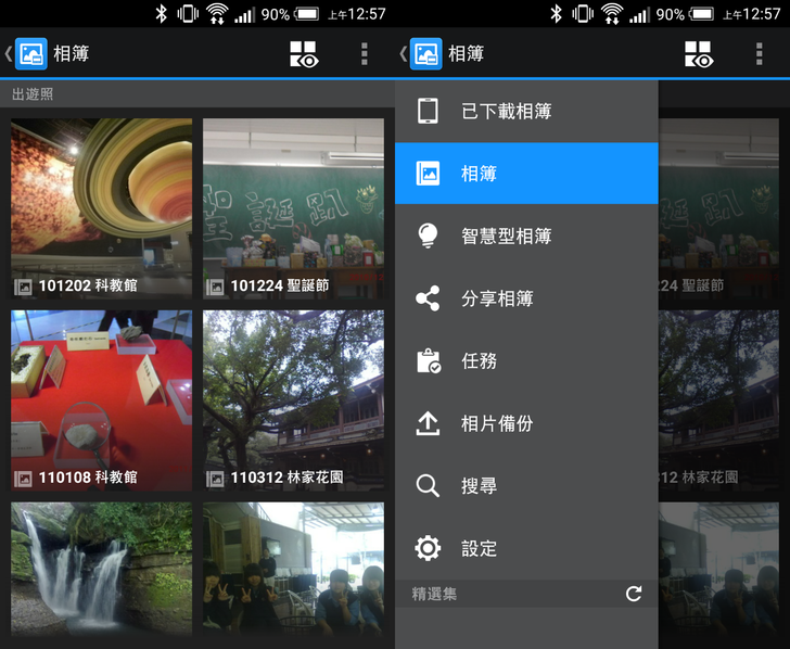 相簿也是兩個兩個並排顯示,且左側的功能列有相關功能能選擇。