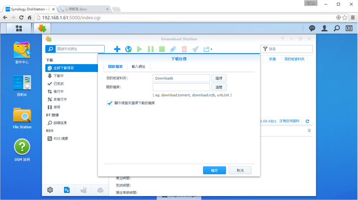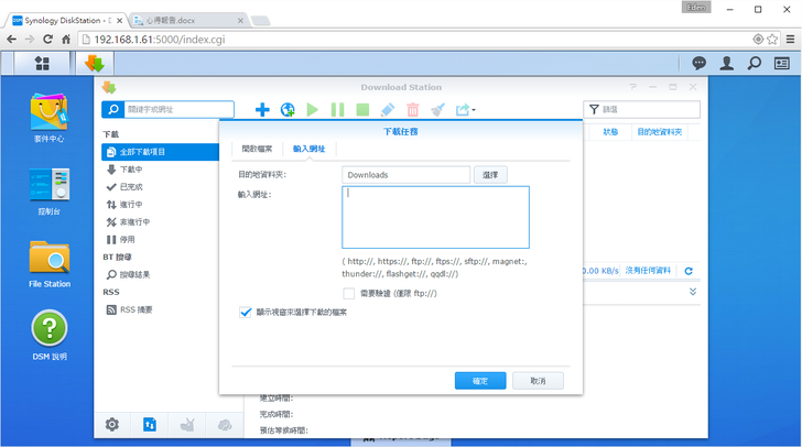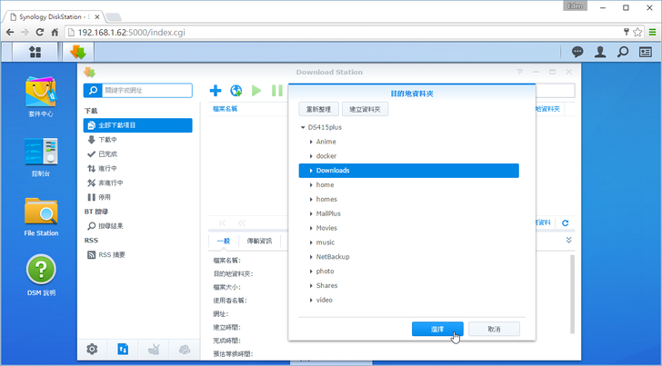 【Download Station】Download Station能把檔案放在NAS下載,而不用電腦開著下載;第一次打開Download Station後,需要設定下載路徑,因此可以創一個"Download"的共享資料夾。