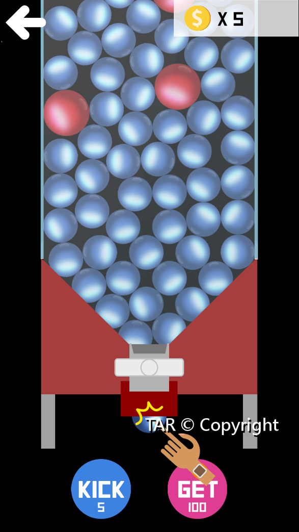 每5元KICK可以晃動機台,直到玩家覺得OK了就按GET花費100元取出新的球!