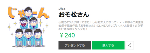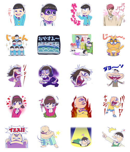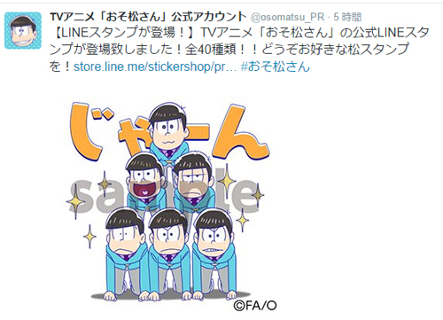 人氣作品《小松先生》在今日1/14官方twitter上公佈,於通訊軟體LINE上架週邊貼圖的消息。內容包括作品中六兄弟各種形象貼圖,其中最具話題性「椴松」(トド松)的經典表情也收錄在其中。另外,曾一時造成轟動話題的《K-ON!!輕音部》在同日也推出官方第二系列貼圖。