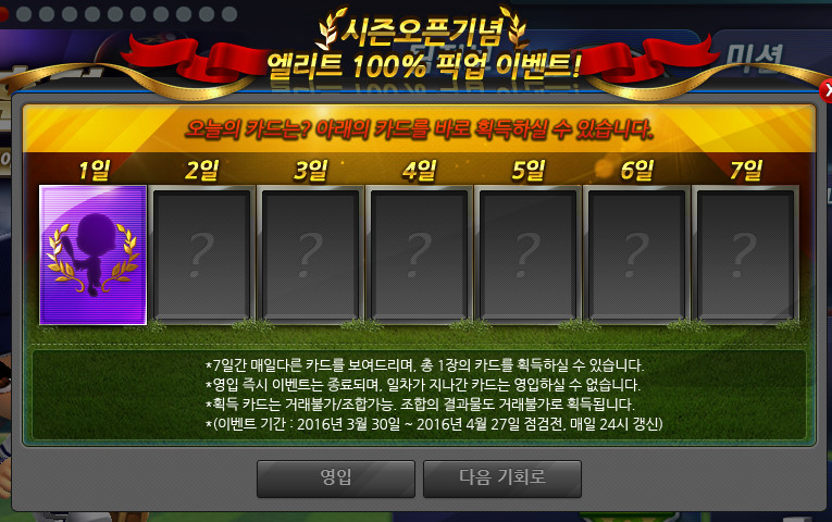 一天有一次機會,可以獲得球員卡(球員卡等級如下)