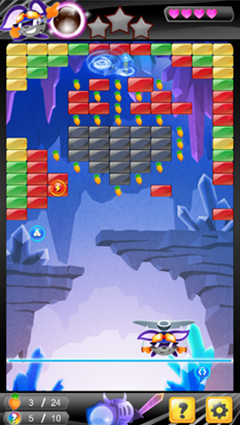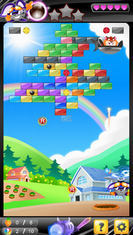 | 遊戲也是將場上的磚塊清空即可獲得勝利,但是加入了「三顆星星」的評價系統。 |