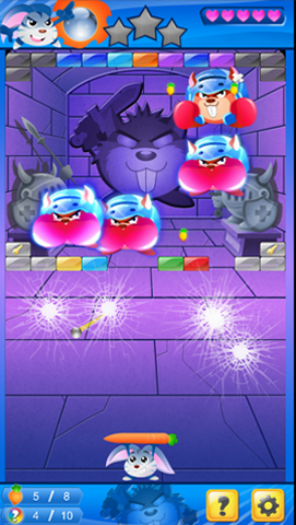 | 當玩家第40關過關後,可以獲得第二隻角色「粉粉」,她與第一隻兔子「優兔」玩起來最不同的地方,是球的變化性。「優兔」的球速是屬於新手級速度,而「粉粉」的球速在多次撞擊之後,會漸漸變的非常快速,而且球撞擊時還會有愛心特效。 |