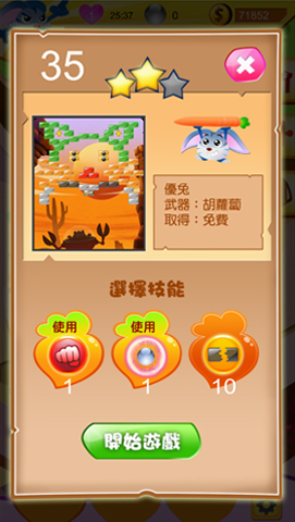 換了角色則連遊玩模式都會改變,在難度方面,優兔屬於簡單,粉粉屬於普通,豪酷屬於困難。目前關卡共各有60關,希望在《新打磚塊》改版前,大家都可以找到屬於自己的兔子角色,體驗遊戲樂趣吧! |