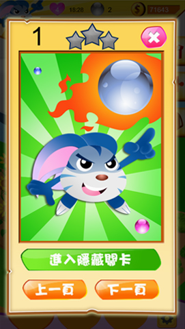 | 每關第一次獲得「三顆星星」的評價,即可獲得遊戲中的金幣以及開啟隱藏關卡的拼圖。金幣可以購買遊戲中的補助道具與角色,但關卡還是得依靠玩家的遊玩來開啟。 |