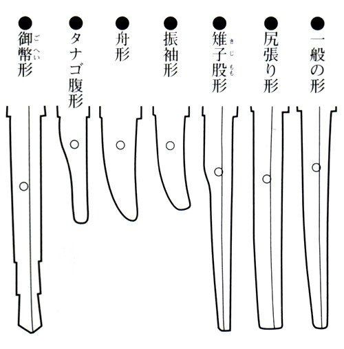 「切先」或稱"鋒",刀身最前端的刀尖,不同的時代有各種不同的切先設計。
