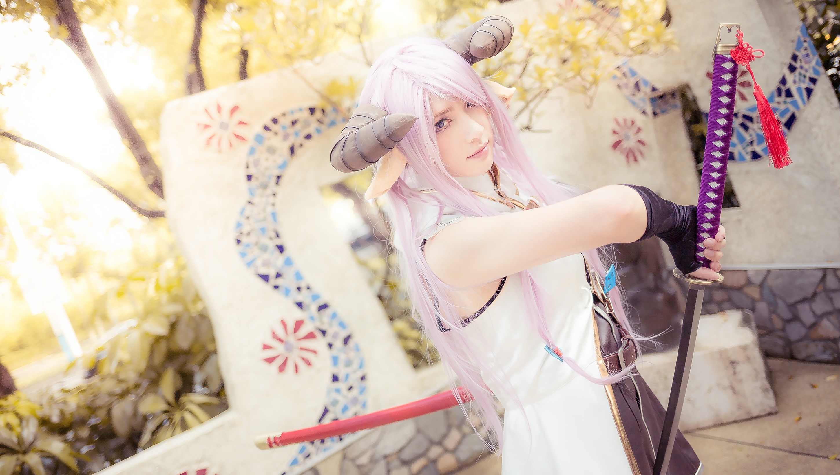 設定上是追求著某個強者腳步的劍士,一開始沒了解劇情不知道是誰,