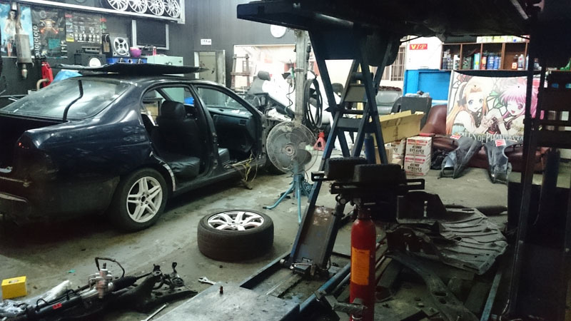 和朋友借了場地開始做車體移植