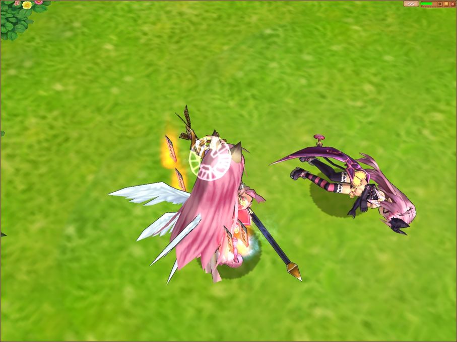 (『倒れる』的連串motion,首先非常快速的 在空中與地面並行下自轉一週後倒地 ,如果莉莉絲這時的表情依然是像受到攻擊時的表情的話,我相信她一定能與佩醬(黑獨角獸阿魯瑪)作一個非常要好的朋友。)