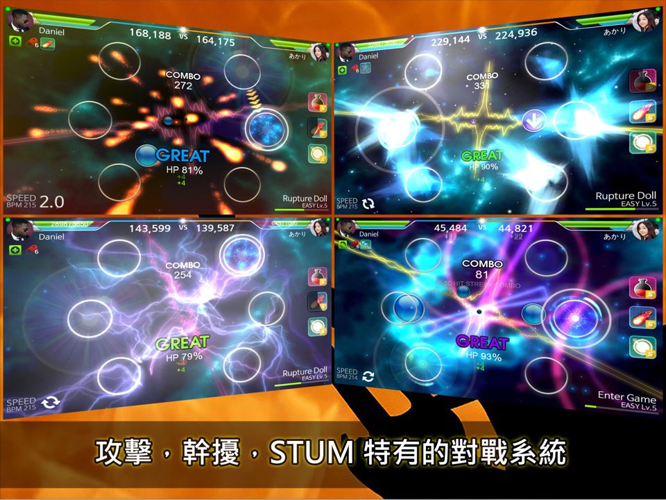 憑借各種流派和令人驚嘆的視覺效果的高品質音樂,STUM將為玩家提供最佳的節奏體驗。