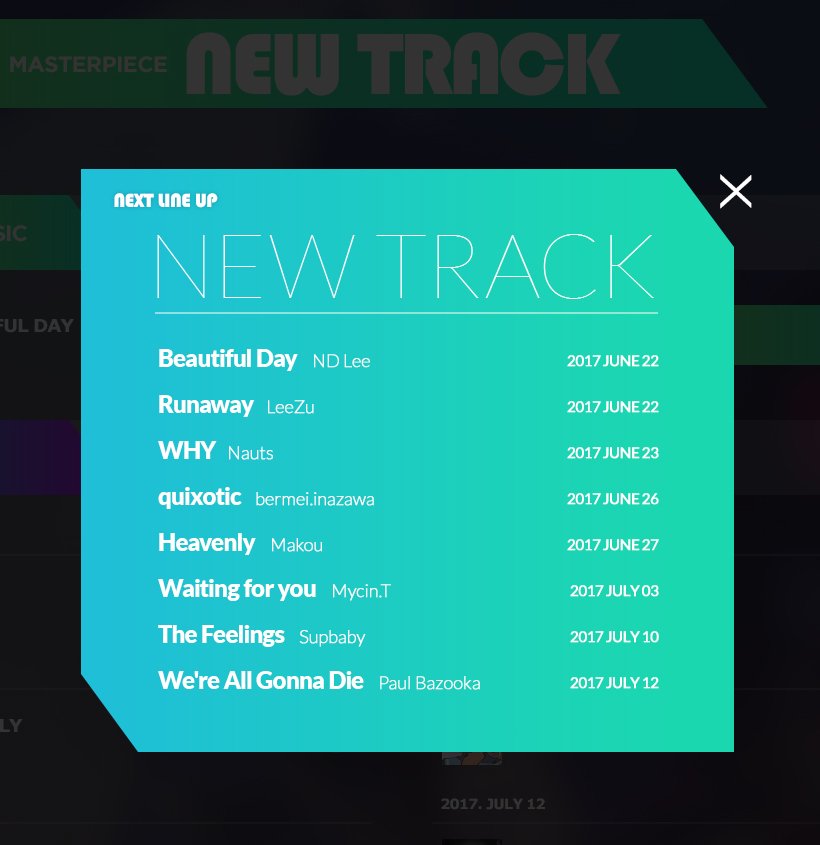 本次公開的新曲宣傳片可目睹本作的作曲陣容,包含Mycin.T、bermei.inazawa、ND Lee、Sampling Masters MEGA等作曲家,當中也不乏系列作的一些熟面孔。去年5月韓國遊戲媒體進行採訪,開發室長Bexter曾說過「說服幾個離職的友人回來做DJMAX」(出自gamefocus訪談)、「會努力和玩家期望的作曲家聯絡」(出自ruliweb訪談),如今從新曲宣傳片看來的確能感覺到誠意,樂曲的專屬背景動畫也是毫不馬虎。