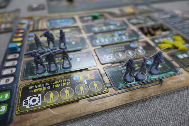 如果讓我來形容的話,那應該會是「主題感很重策略也很重的遊戲」,如果你原先的預期是情境歡樂遊戲,有些地方可以靠碰運氣來蒙混,然後享受劇情的話,那可能就會失望。因為遊戲中策略的部分真的不輕,要隨時依據場上的形式,翻出的新裝備,每回合突發的新事件,來調整自己庇護所的發展方向,可以打獵,可以蒐集食物,可以拼命修裝備,也可以不停擴建房間,沒有一個一定會勝利的路線,變化性算是相當的多~因此雖然我死得很慘,拼命地餵自己的倖存者喝水或是餓肚子,但我仍然認為這是個不錯的遊戲~