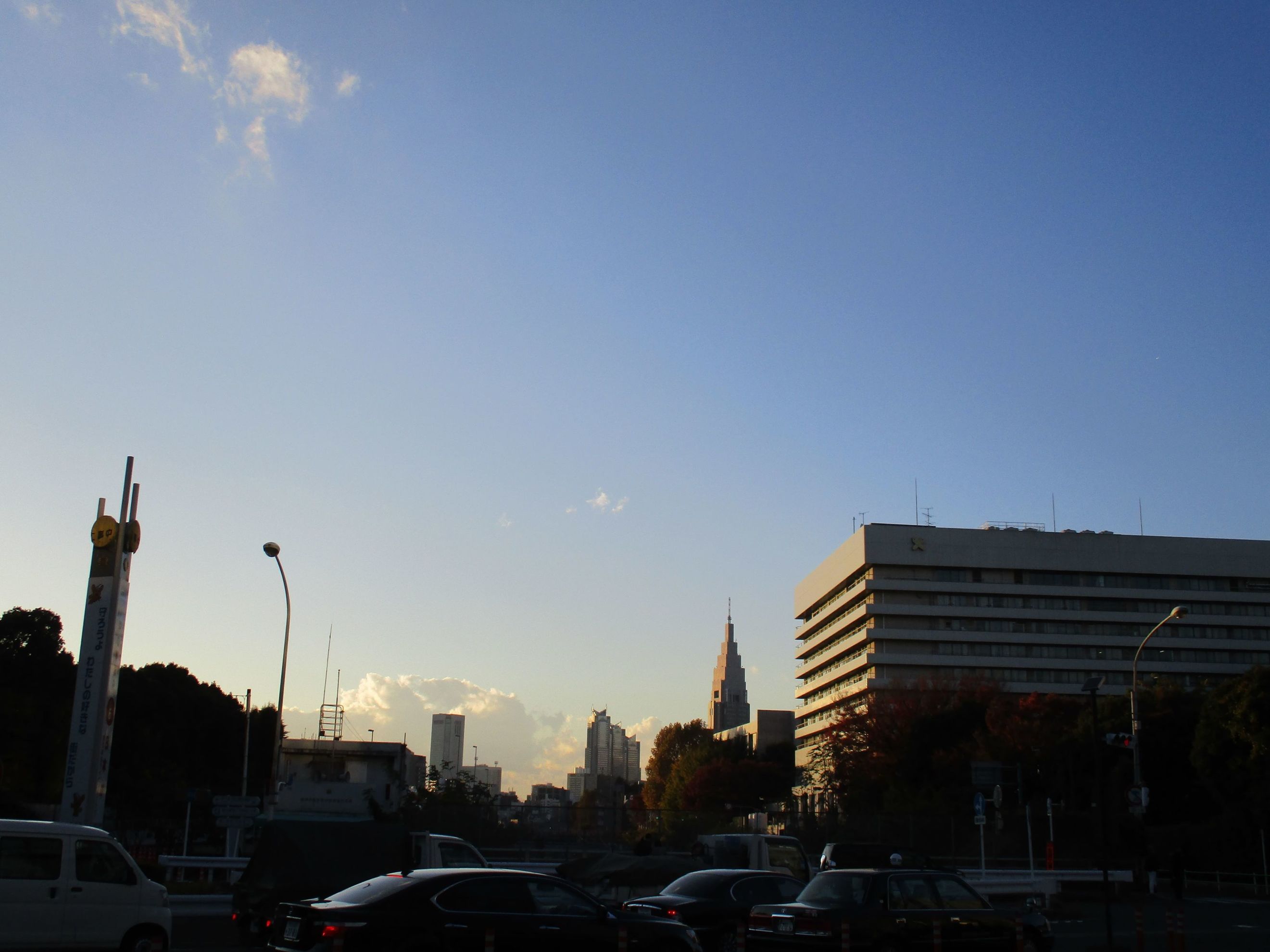 從國立新美術館慢慢散步看著冬日蔚藍的天空與新宿御苑的銀杏紅葉約三十分鐘的腳程就能到達,沿途也能看見常常出現在新海誠作品中的NTT DOCOMO大樓。