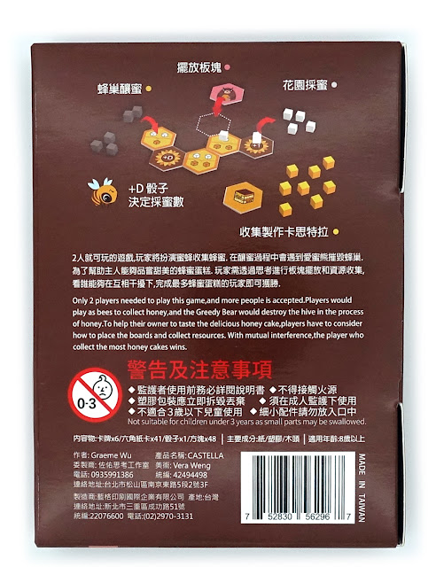 雖然在カステラ在台灣的很多時候被錯誤的翻譯成蜂蜜蛋糕,但是日本原版的卡斯特拉並沒有加入蜂蜜。有很多店家販賣的是自創的蜂蜜蛋糕,但為了提升知名度分別以中日文標示為「蜂蜜蛋糕(カステラ)」。(from 維基百科) 這個...今天要介紹的是【用蜂蜜製造的卡斯特拉但查資料之後才知道原來正宗長崎蛋糕是完全不用蜂蜜的這樣有點囧到底要怎麼辦好像凹不下去了的蜂蜜蜜蜂相關桌遊】(以上是本人查完維基百科內心的崩潰吶喊)。