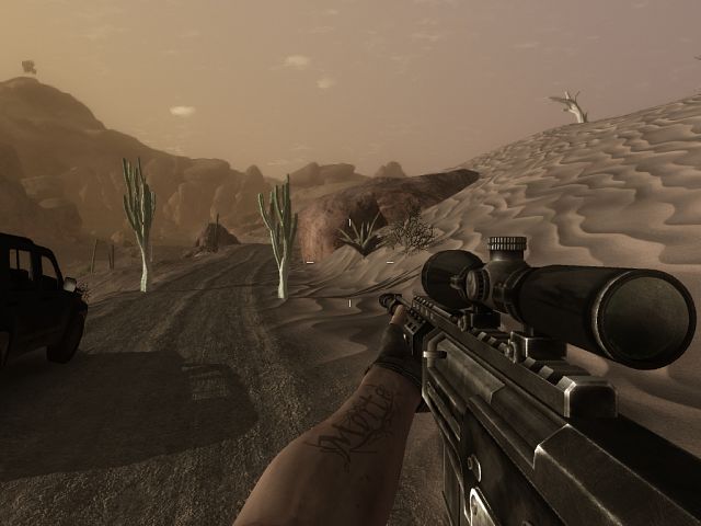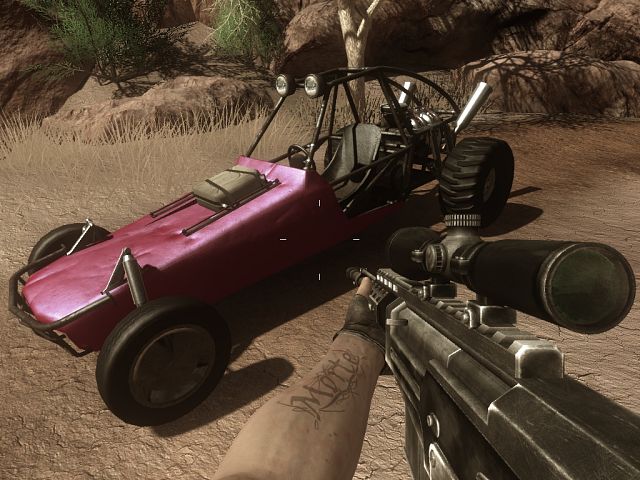 本作一開場,主角就坐了好長一段車,暗示往後有許多開車機會,果然接下來許多任務,都要開好長一段路,玩家有機會在沙漠、叢林、荒野等各種地形中飆車,其中叢林的路特別難開,技術不夠,很容易開成碰碰車,到處撞壁,非常挫折。不過幸好主角有修車技能,半路修車是常有的事。車子來源則是到處都有各式無主的車可以撿,而且常常有白目攔路匪開車來搶劫,就當他們送車來給你開。