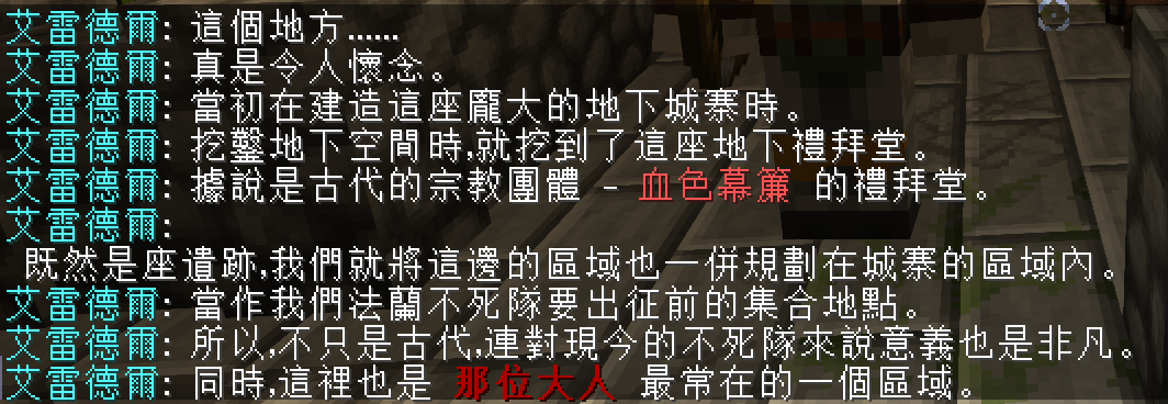【地下墓地】 - 亡魂的血腥戰場 (尚未開放)在夜之森深處的一座巨大城寨。傳說中的法蘭不死隊正駐紮在那邊。隊長正是常漫步於深淵的歌爾特萊伊。