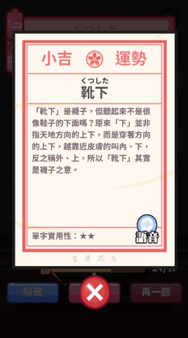 不論答對答錯,都可從解籤中學習字義,讓自己充分理解!